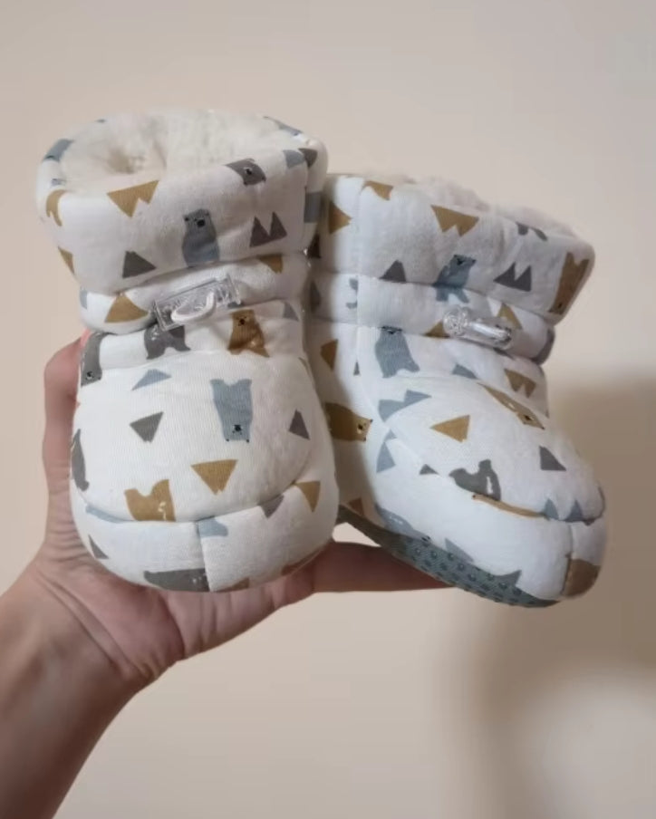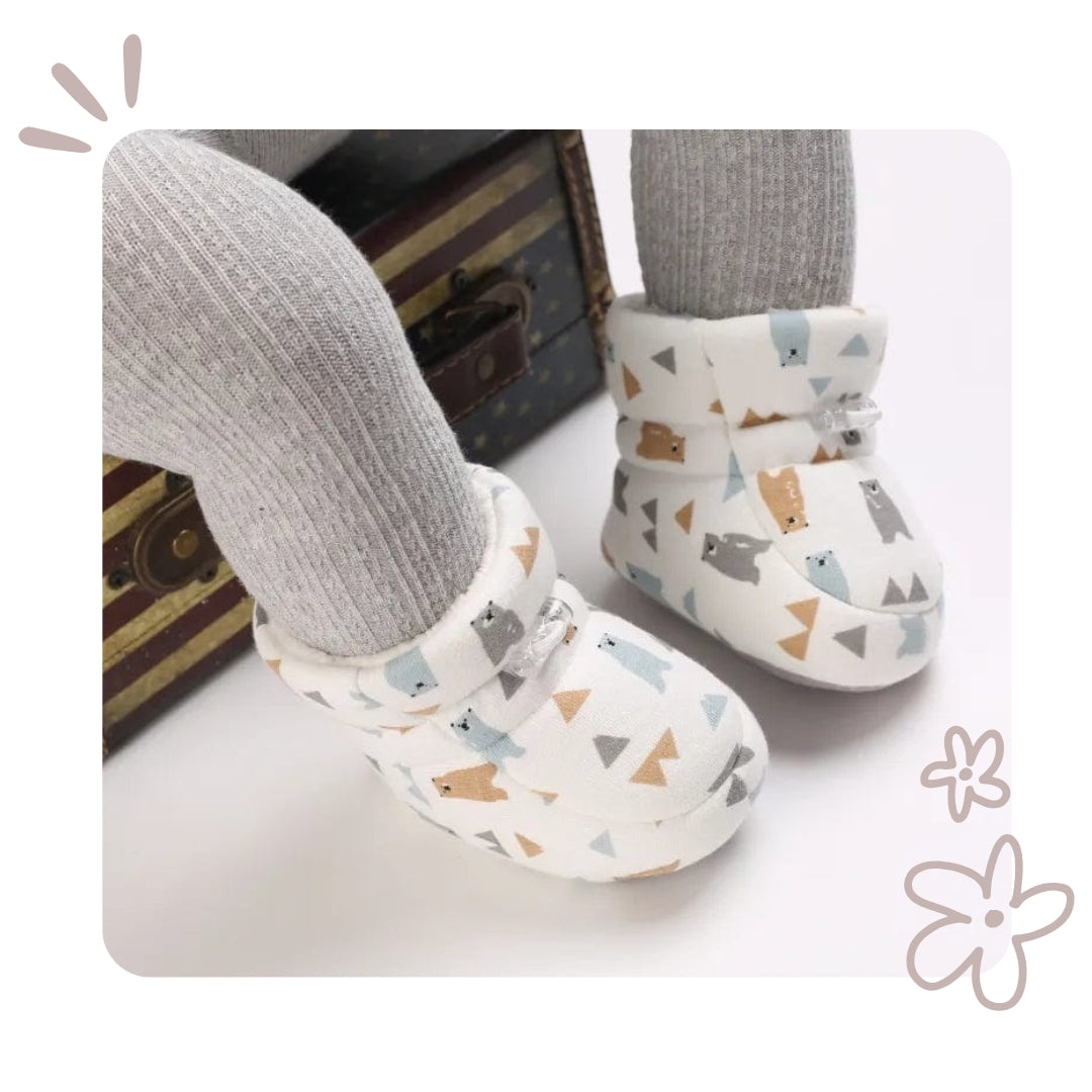 Des chaussons mignons, chauds et antidérapants. Parfaits pour les premiers pas de bébé !